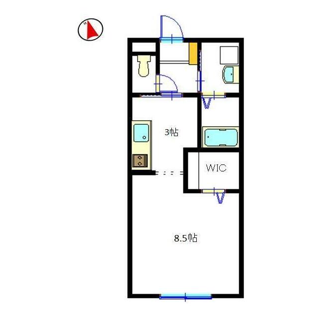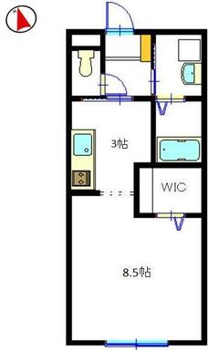 | 間取り | 1K(洋8.5 K3) | 主要採光面 | 南 |